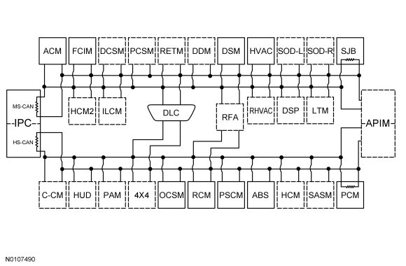 The Instrument Panel Cluster (IPC) is the gateway module, translating messages on the HS-CAN (High Speed Controller Area Network) to the MS-CAN (Medium Speed Controller Area Network) and vice versa. This function allows a message to be distributed throughout both networks.