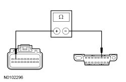 - Measure the resistance between the C-CM (Cruise-Control Module) C1582-8, circuit VDB04 (WH/BU), harness side and the DLC (Data Link Connector) C251-6, circuit VDB04 (WH/BU), harness side.