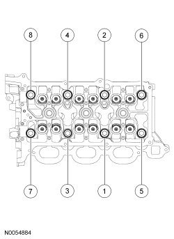 Install a new gasket, the LH cylinder head and 8 new bolts. Tighten in the sequence shown in 5 stages: