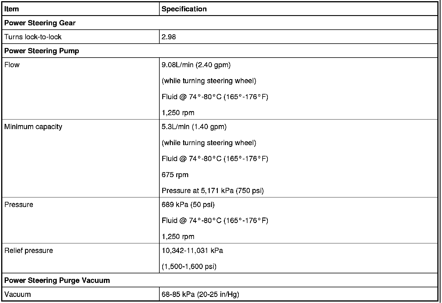 Pressure, Vacuum and Temperature Specifications