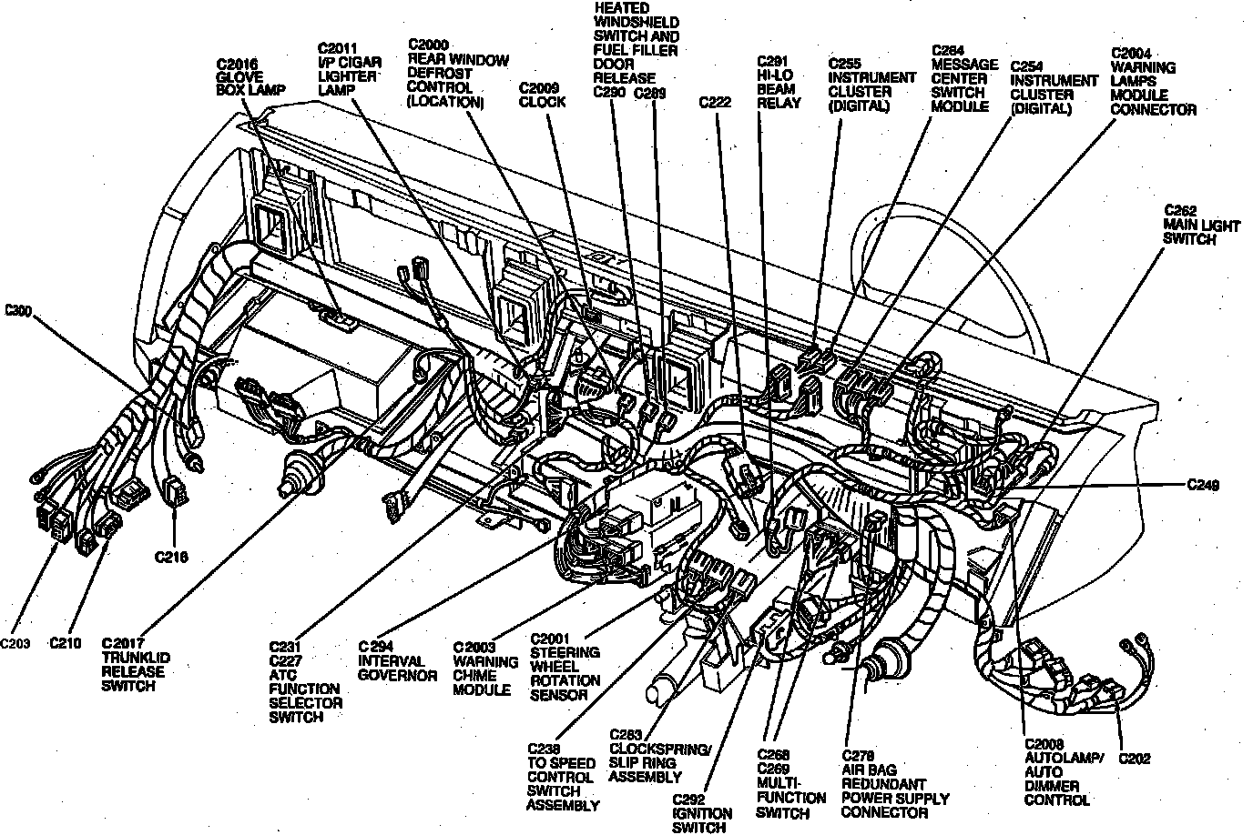 Top LH Side Of I/P, Near LH Side Of Steering Column