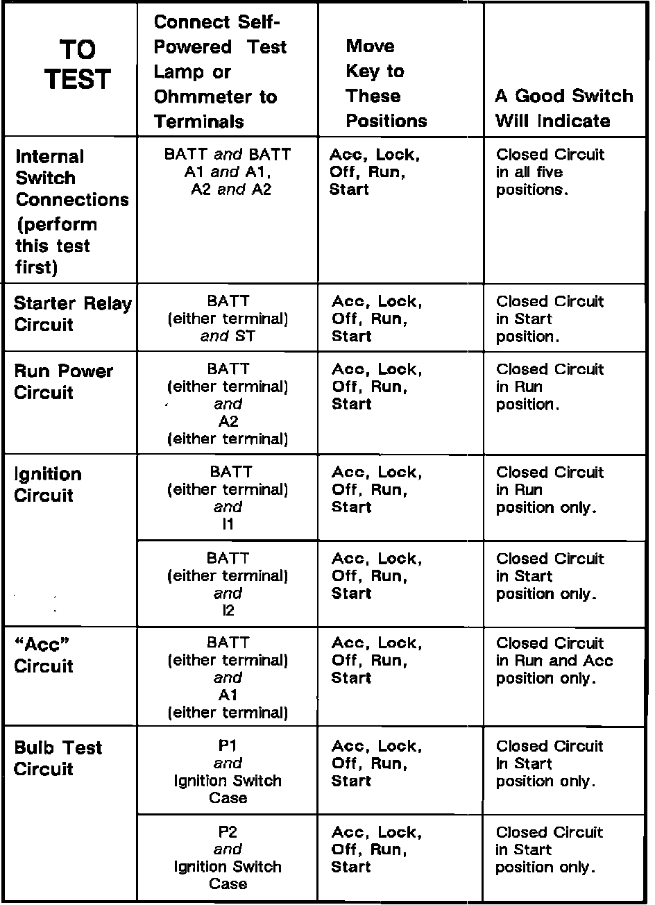 Ignition Switch: Testing and Inspection