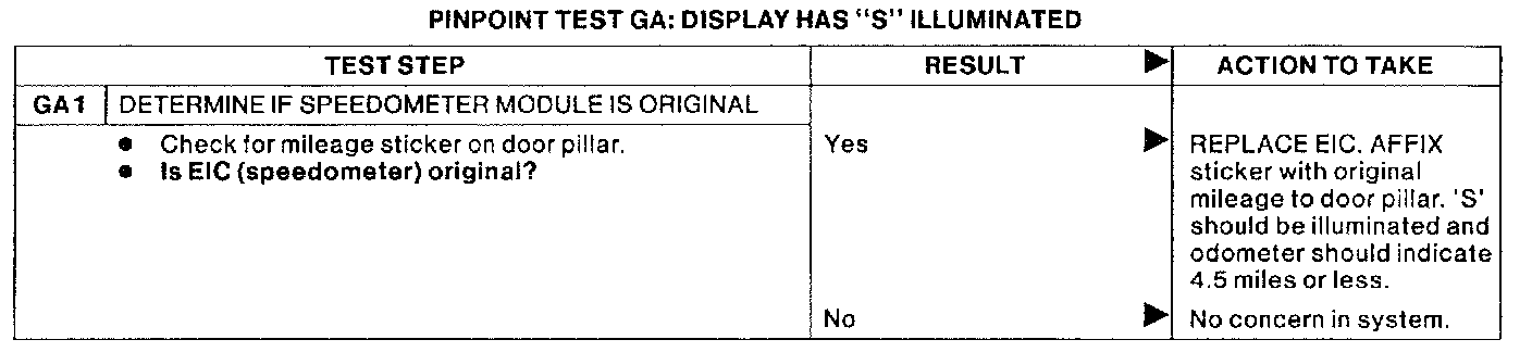 PINPOINT TEST GA: DISPLAY HAS "S" ILLUMINATED.: