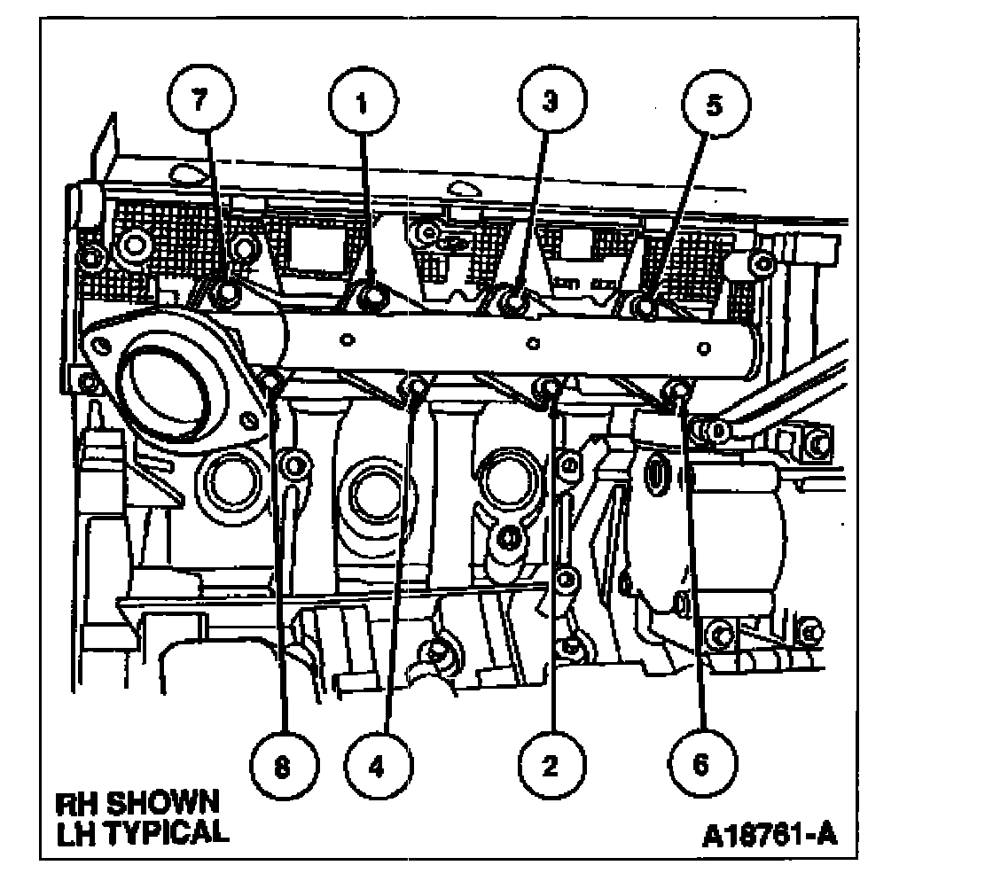 1. Install exhaust manifold gasket and exhaust manifold. Tighten exhaust manifold bolts to 20-30 N-m (15-22 lb-ft) in sequence.