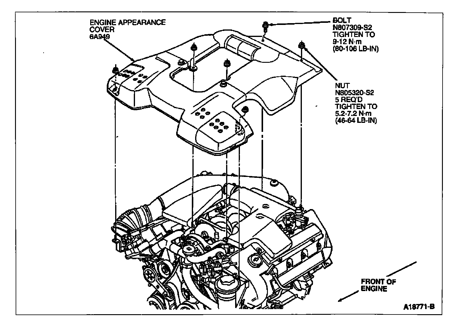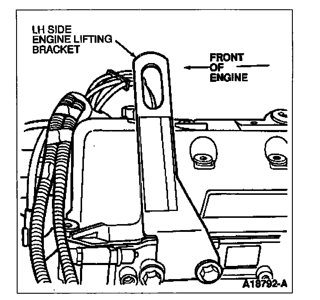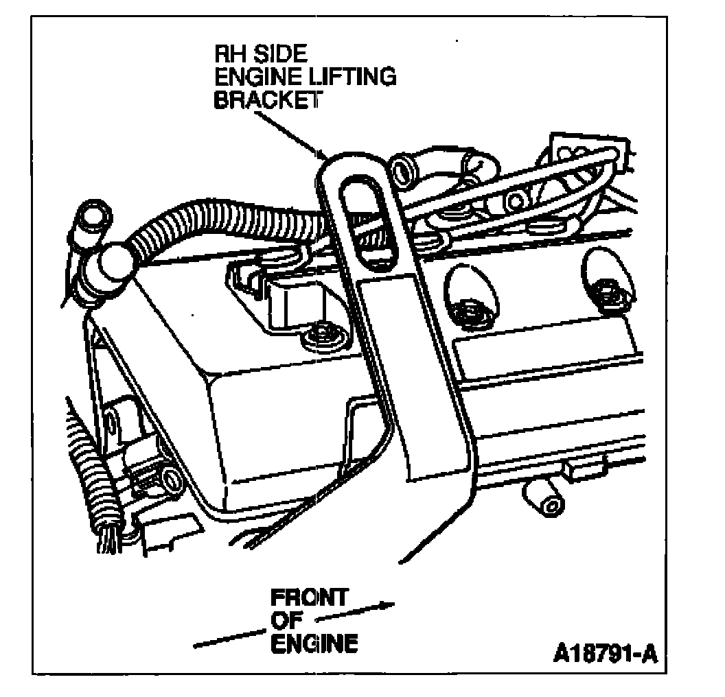 5. Install engine lifting bracketry from Rotunda Engine Lifting Kit 014-00340 or equivalent.