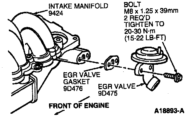 ^ Install new EGR valve gasket and bolts retaining EGR valve to intake manifold. Tighten bolts to 2O-30 Nm (15-22 ft lb).
