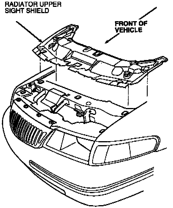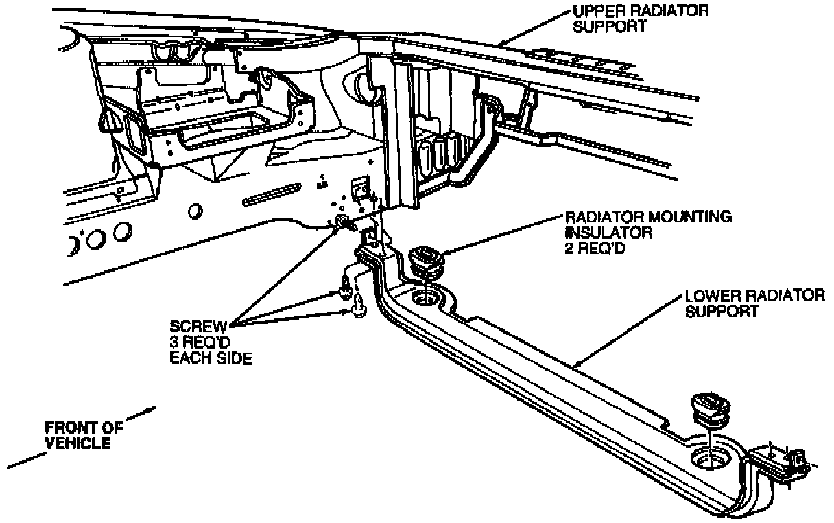 8. Remove six retaining screws and lower radiator support from vehicle.