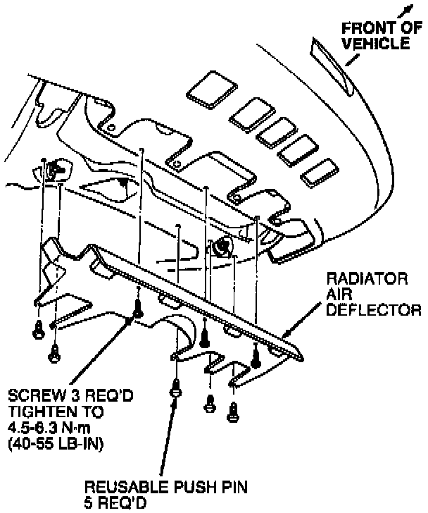 7. Install radiator air deflector. Tighten screws to 4.5-6.3 N.m (40-55 lb-in).
