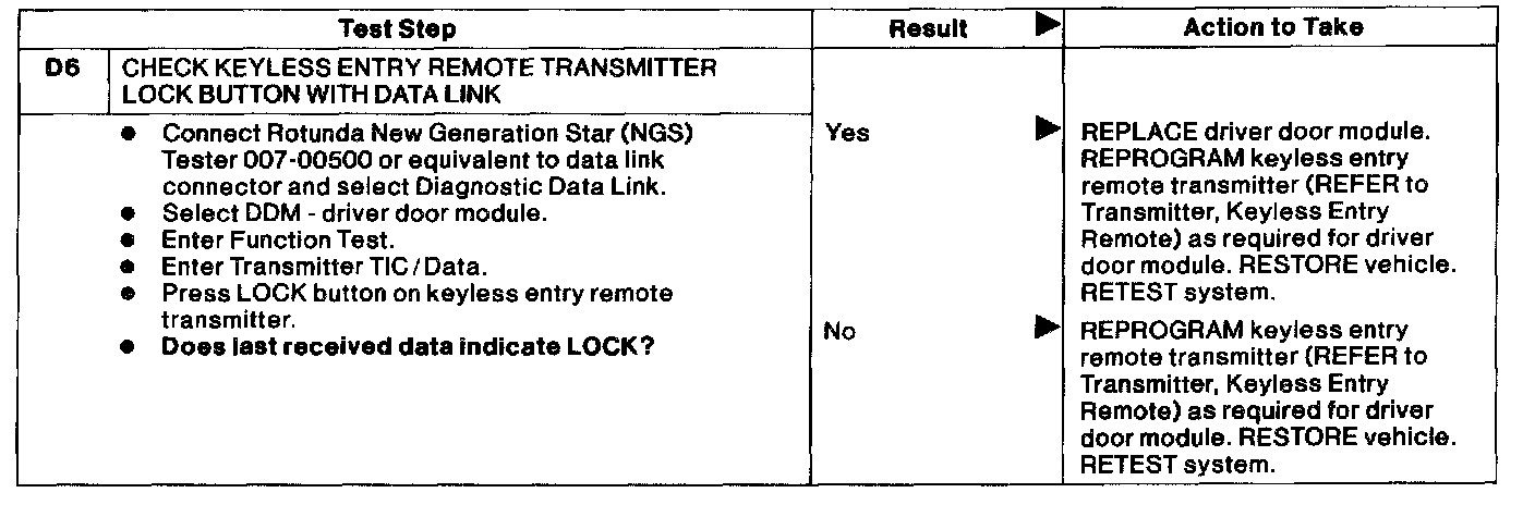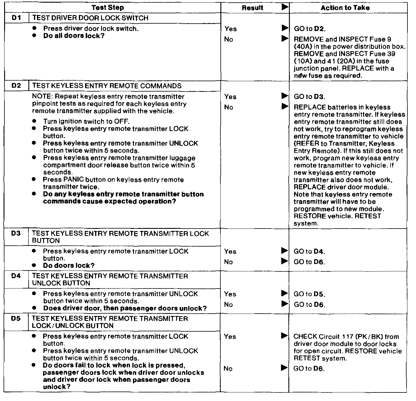 Test D : Doors Do Not Lock or Unlock Using Transmitter