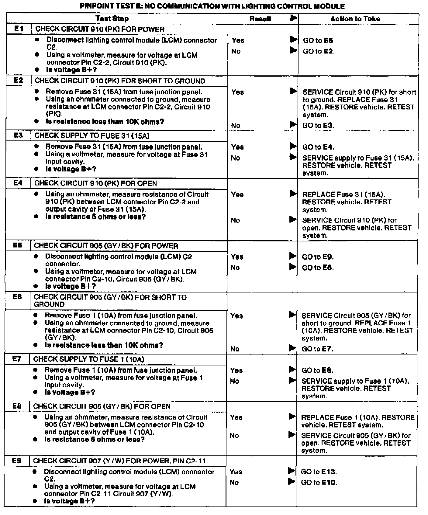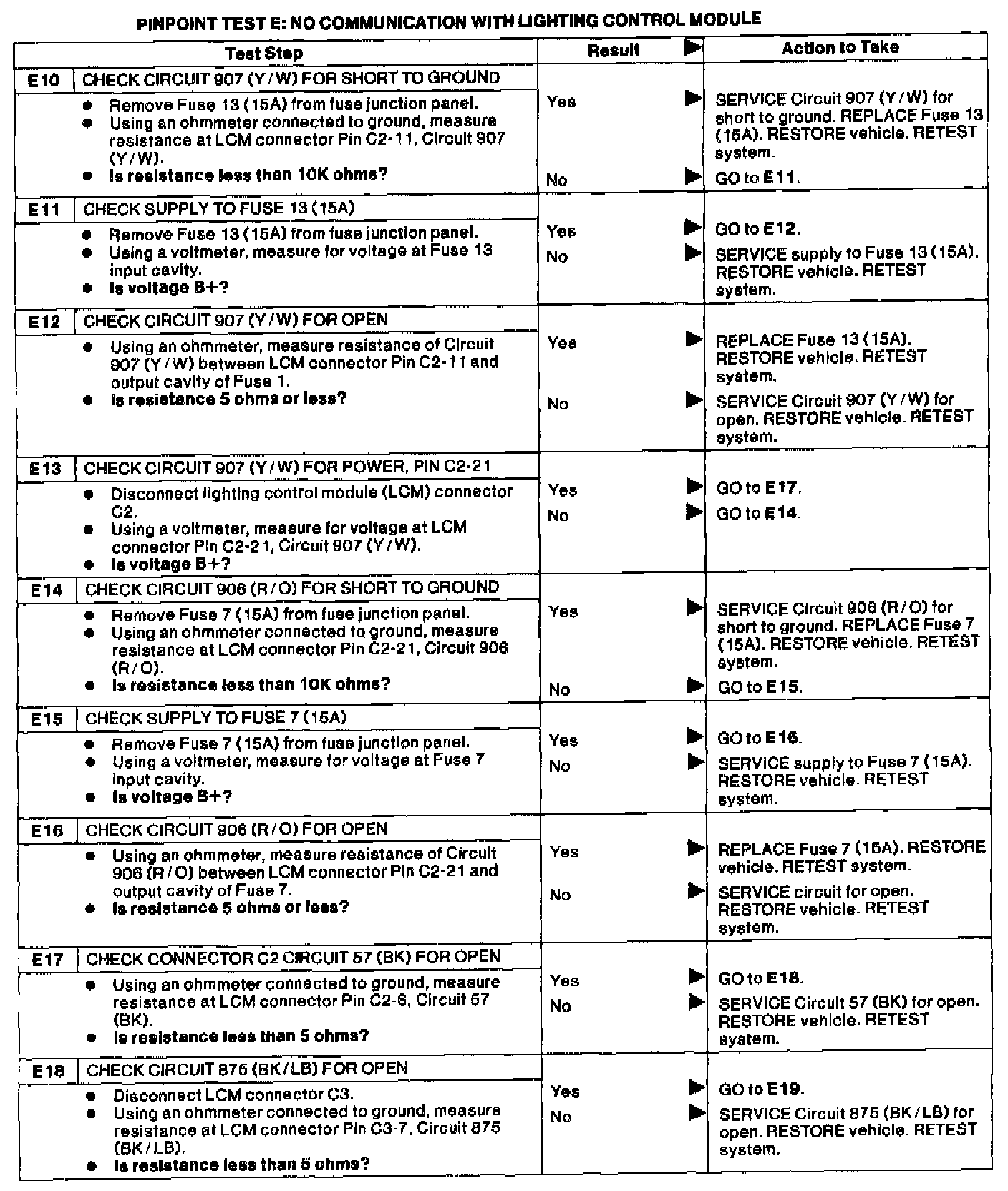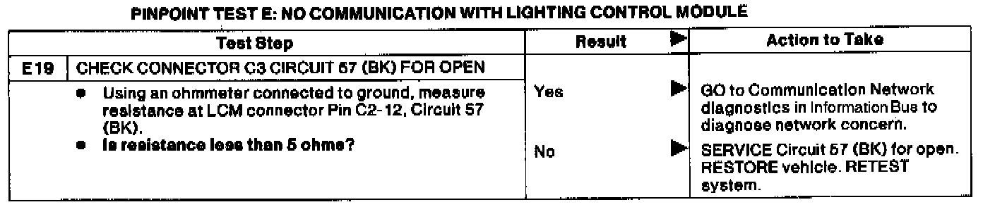 Test E: No Communication With Lighting Control Module