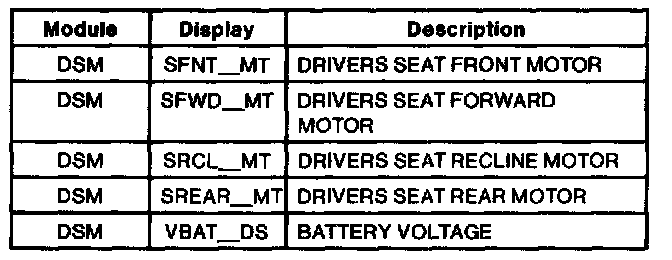 Driver Seat Module PID Index Part 2 Of 2: