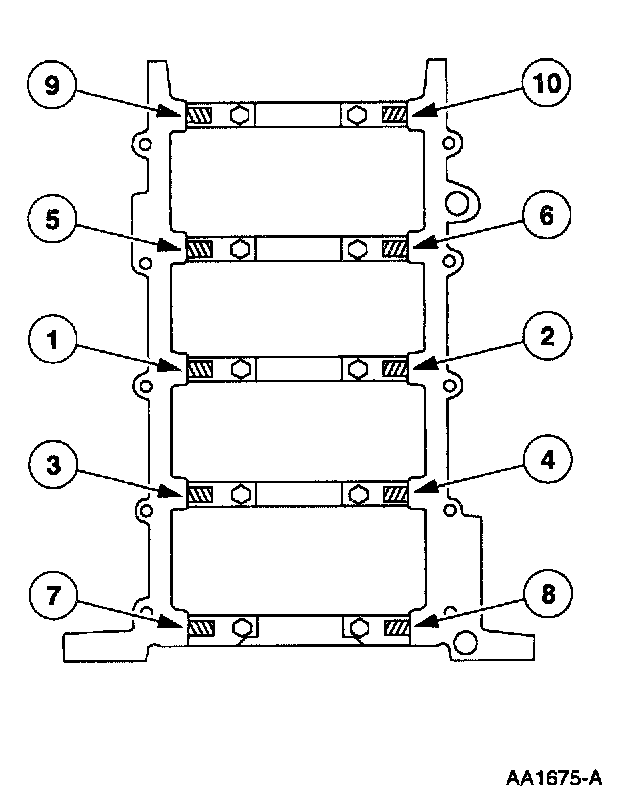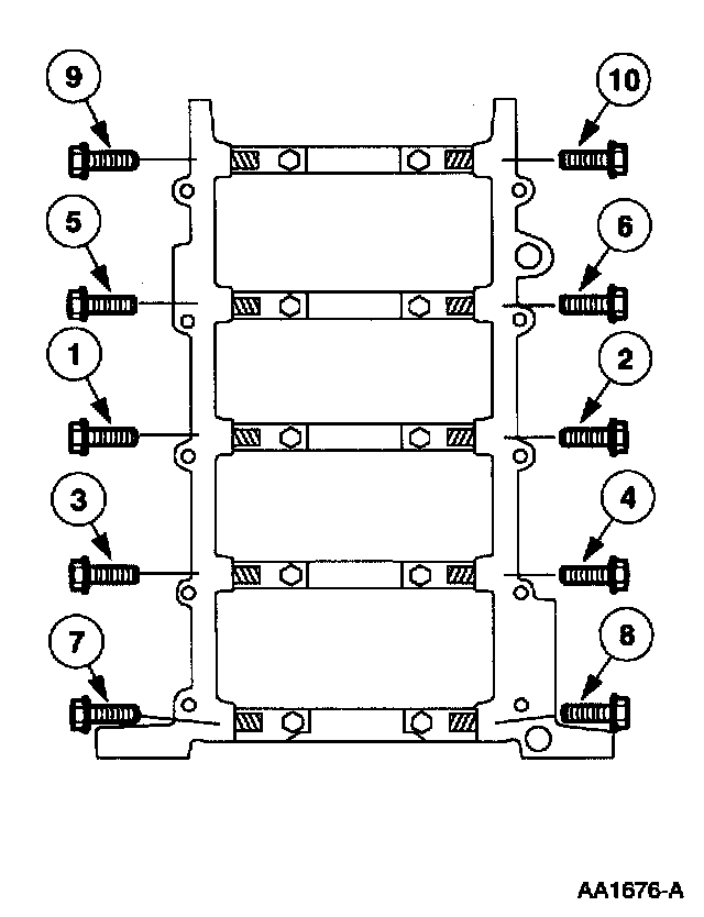 - Install the bolts and tighten in two steps in the sequence shown.