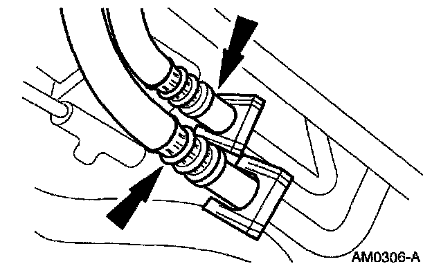 5. Disconnect the evaporator to compressor suction line and the compressor to condenser discharge line spring lock couplings from the A/C manifold and tube.