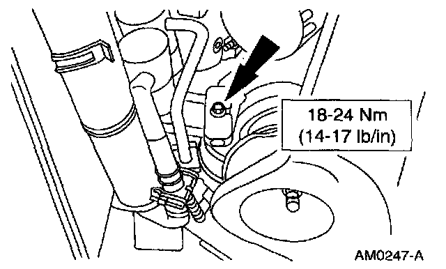 - Apply Pipe Sealant with Teflon(R) D8AZ-19554-A or equivalent meeting Ford specification WSK-M20350-A2 to the threads of the A/C manifold retaining bolt.