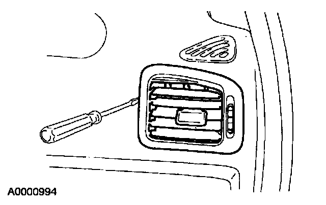 REMOVAL1. Depress the inboard side tab with a flat blade tool. Pull the register rearward, depress the outboard tab and remove the register.