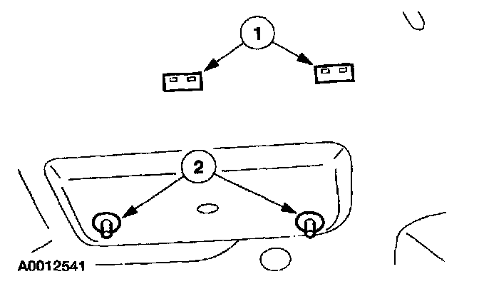 CAUTION: Exercise care not to break the locator pins, which are positioned on the high mounted stoplamp assembly at the rear of the vehicle.