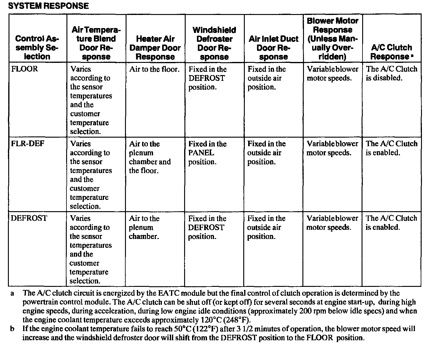 - direct system airflow to the vehicle interior as determined by the electronic automatic temperature control module or manual override.