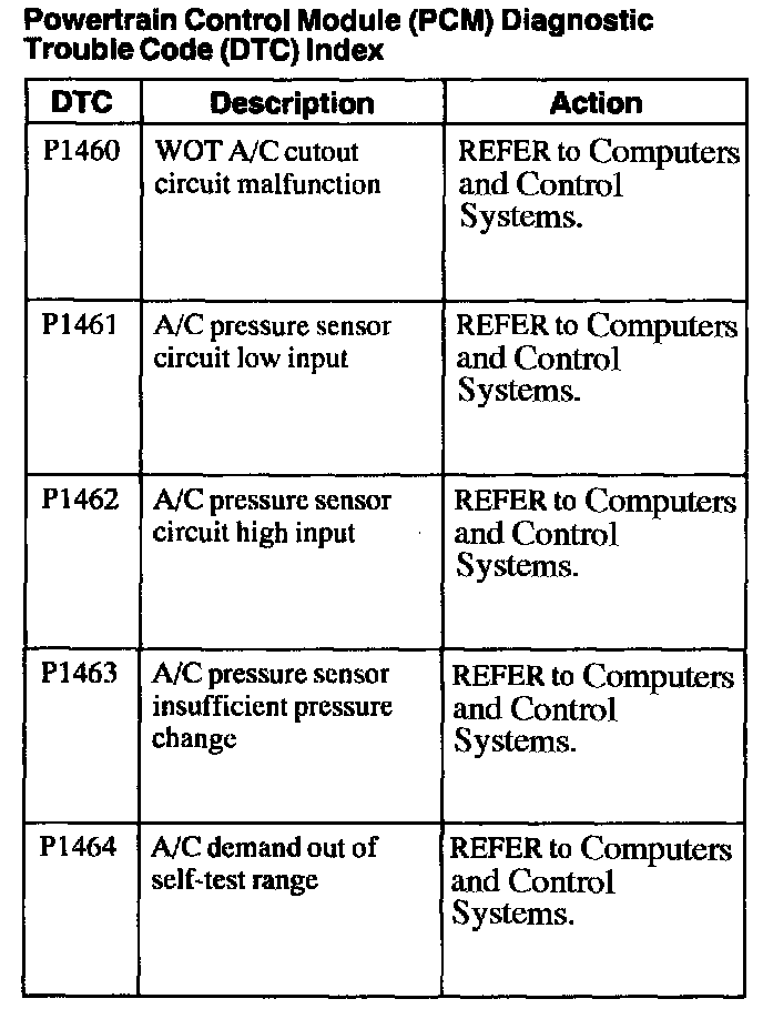 Powertrain Control Module Diagnostic Trouble Code (DTC) Index