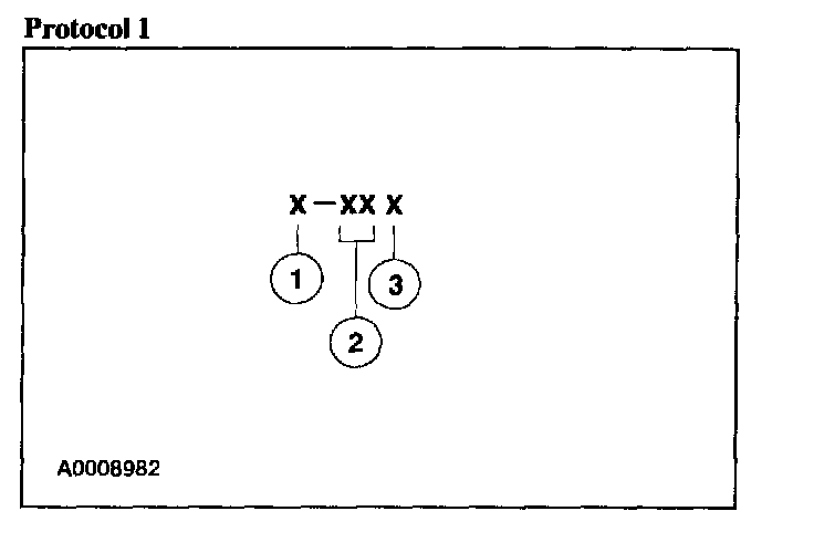 Powertrain calibration information is printed in the lower right corner of the Vehicle Certification Label. Only the base calibration information is printed. Revision levels will not appear, however, they can be found in On Line Automotive Service Information System (OASIS). For the current model year, Ford Motor Company is using three different protocols which describe powertrain base calibration. These protocols are designed to provide worldwide standardization for vehicle calibration. If the electronic calibration strategy has been used since 1998 and carried into the current model year, protocol 1 will be used. Refer to Protocol 1 below. If the electronic calibration strategy has been used since 1999 and is carried into the current model year, protocol 2 will be used. Refer to Protocol 2 below. For new electronic calibration strategies for the current model year, use protocol 3. Refer to Protocol 3 below.