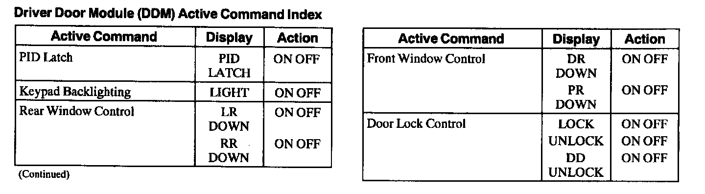 Driver Door Module (DDM) Active Command Index: