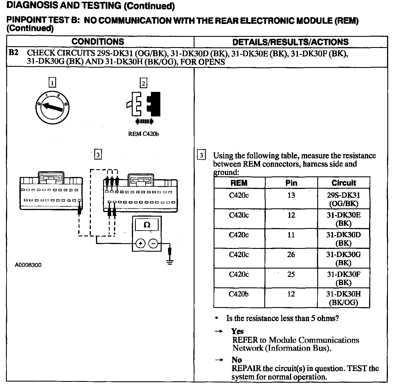 Test B: No Communication With the Rear Electronic Module