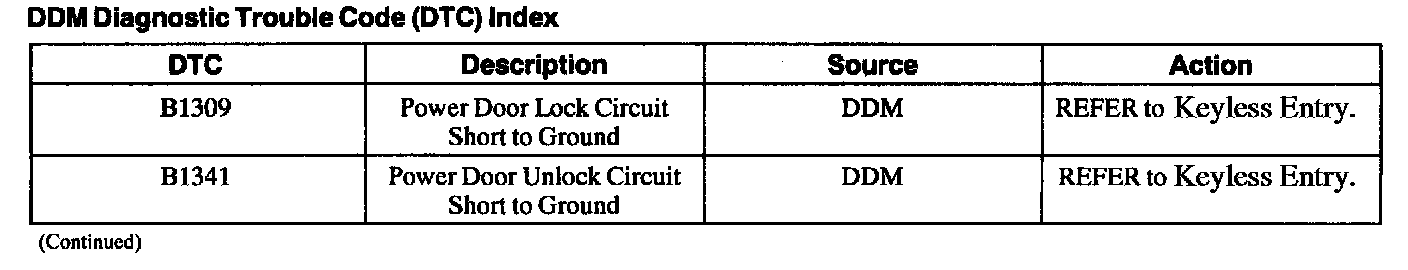 Driver Door Module (DDM) Diagnostic Trouble Code (DTC) Index
