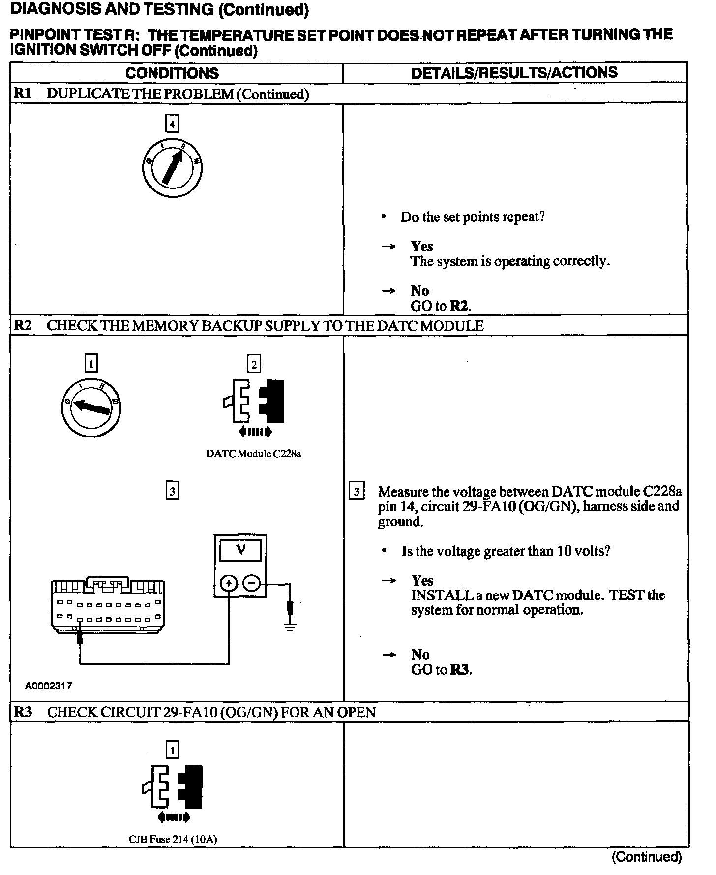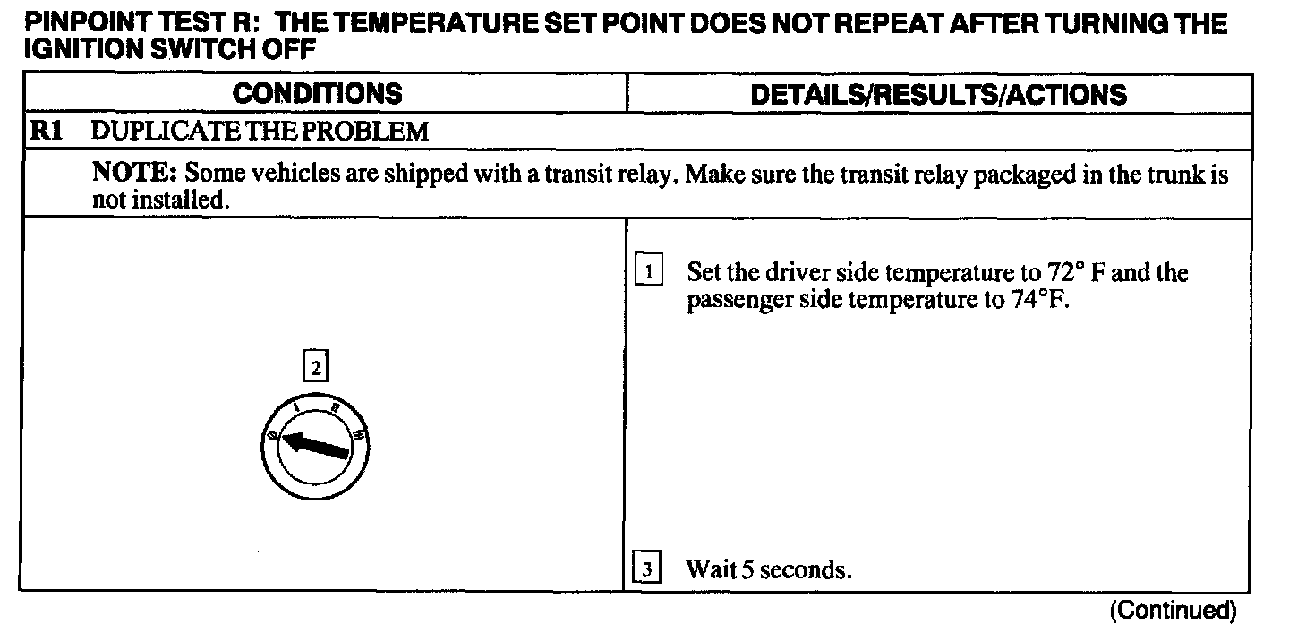 Test R: Temperature Set Point Does Not Repeat After Turning The Ignition Switch Off