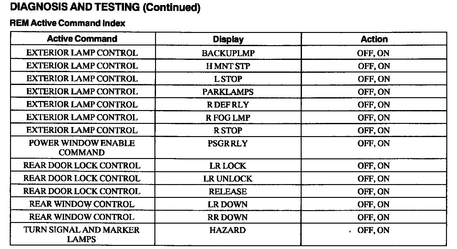 Rear Electronic Module (FEM) Active Command Index
