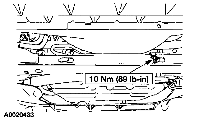 8. Pull the hose rearward between the oil pan and the radiator support crossmember.
