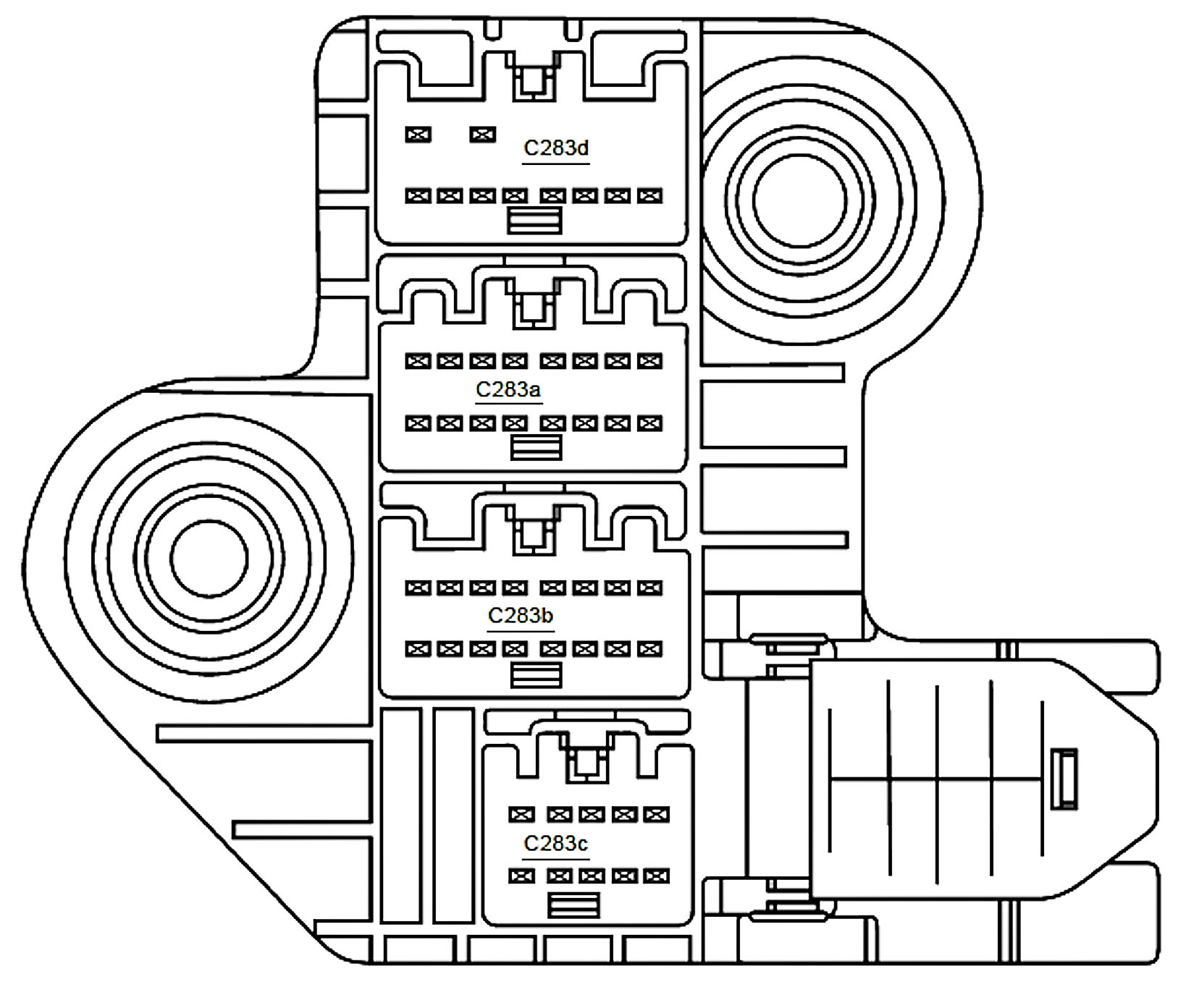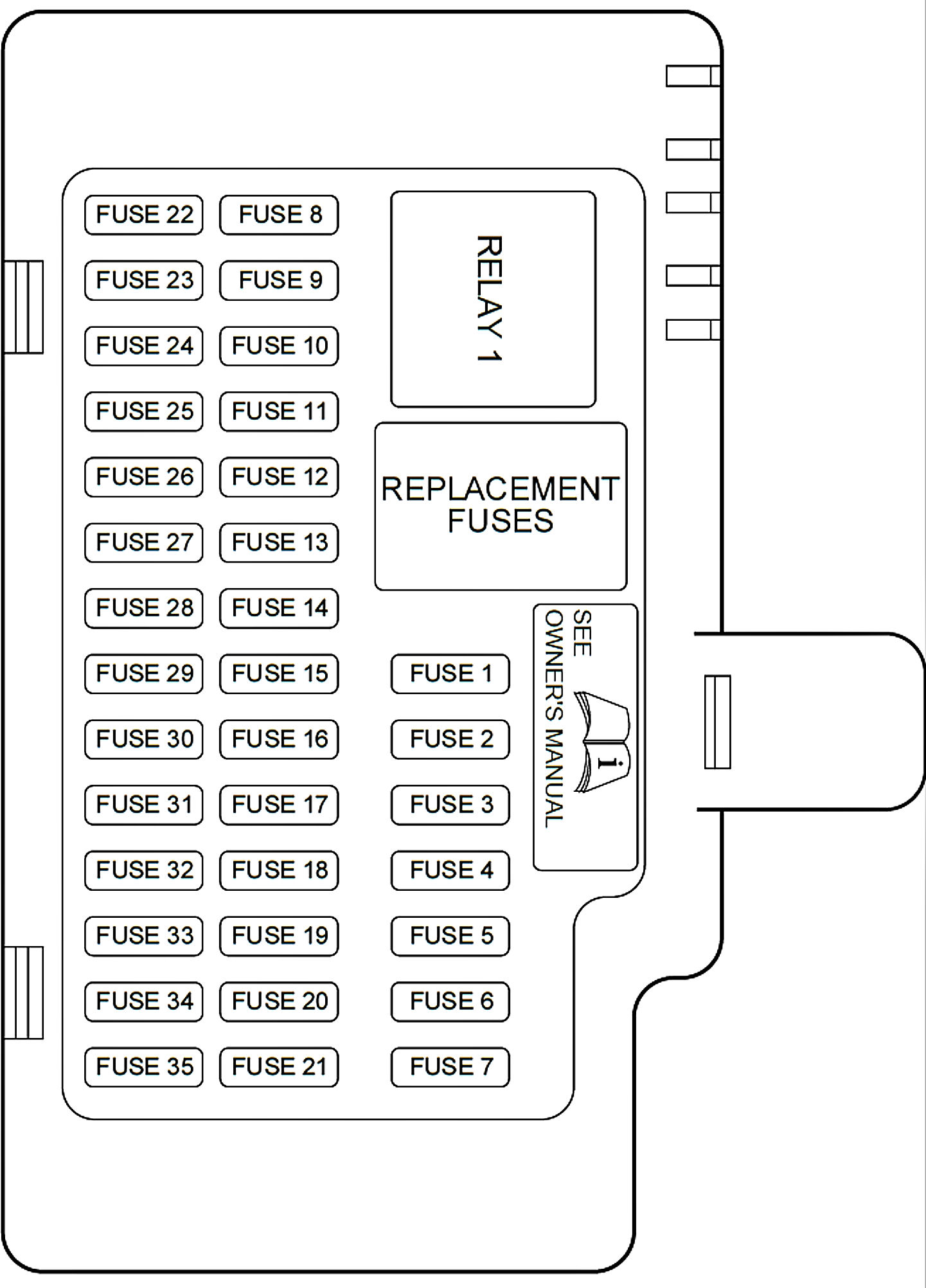 ALLDATA Editor's Note: Ford identifies this one component by 2 different names. Users have reported success comparing these images to determine Application/ID or Location of Fuses and Relays with the Central Junction Box/Passenger Compartment Fuse Panel.