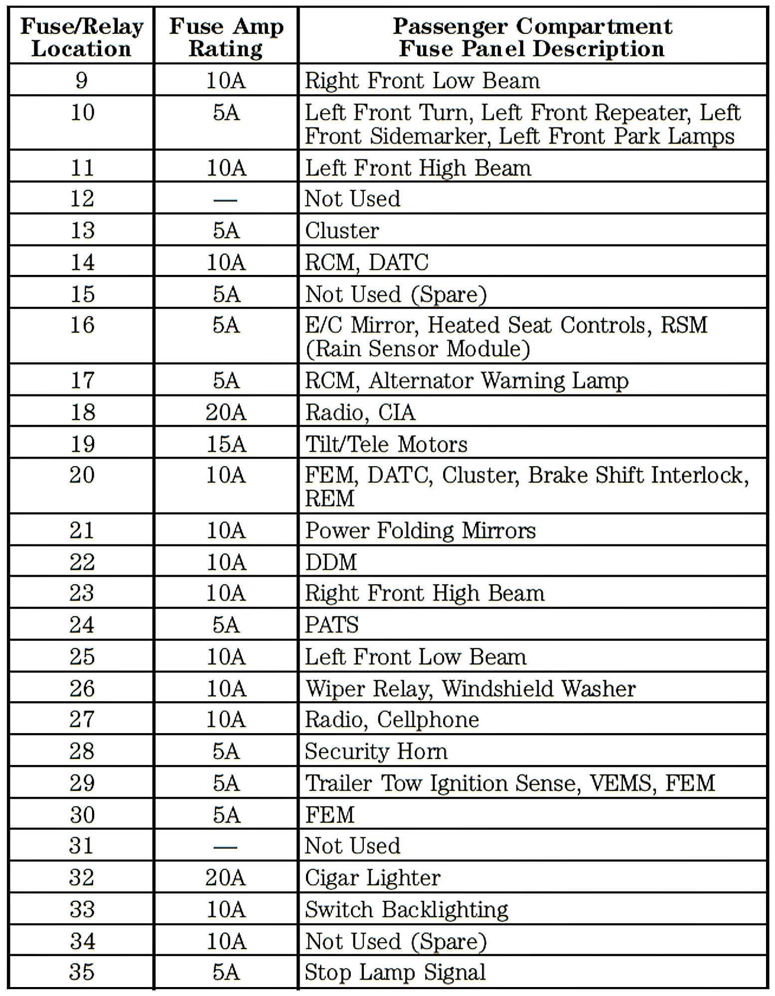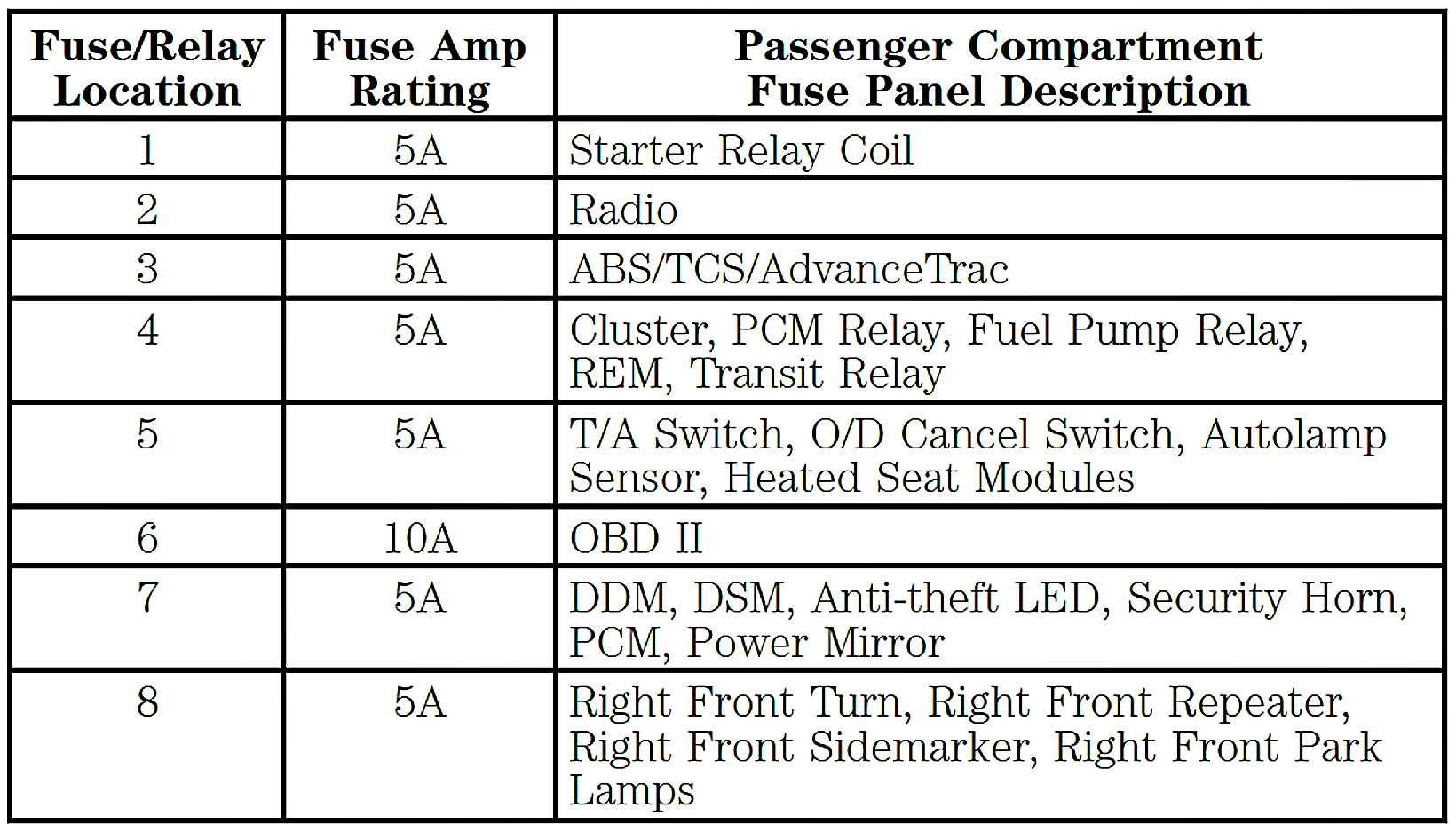 Passenger Compartment Fuse Panel: