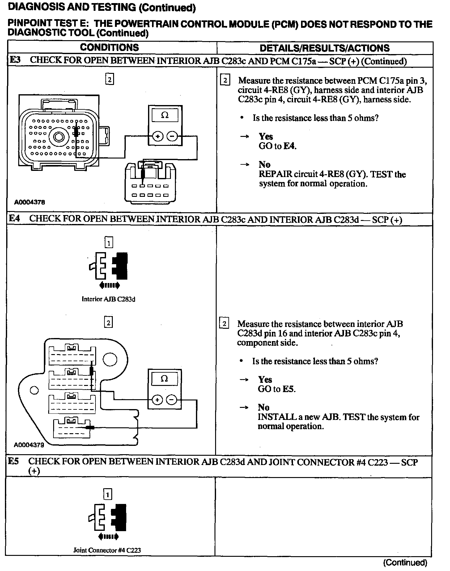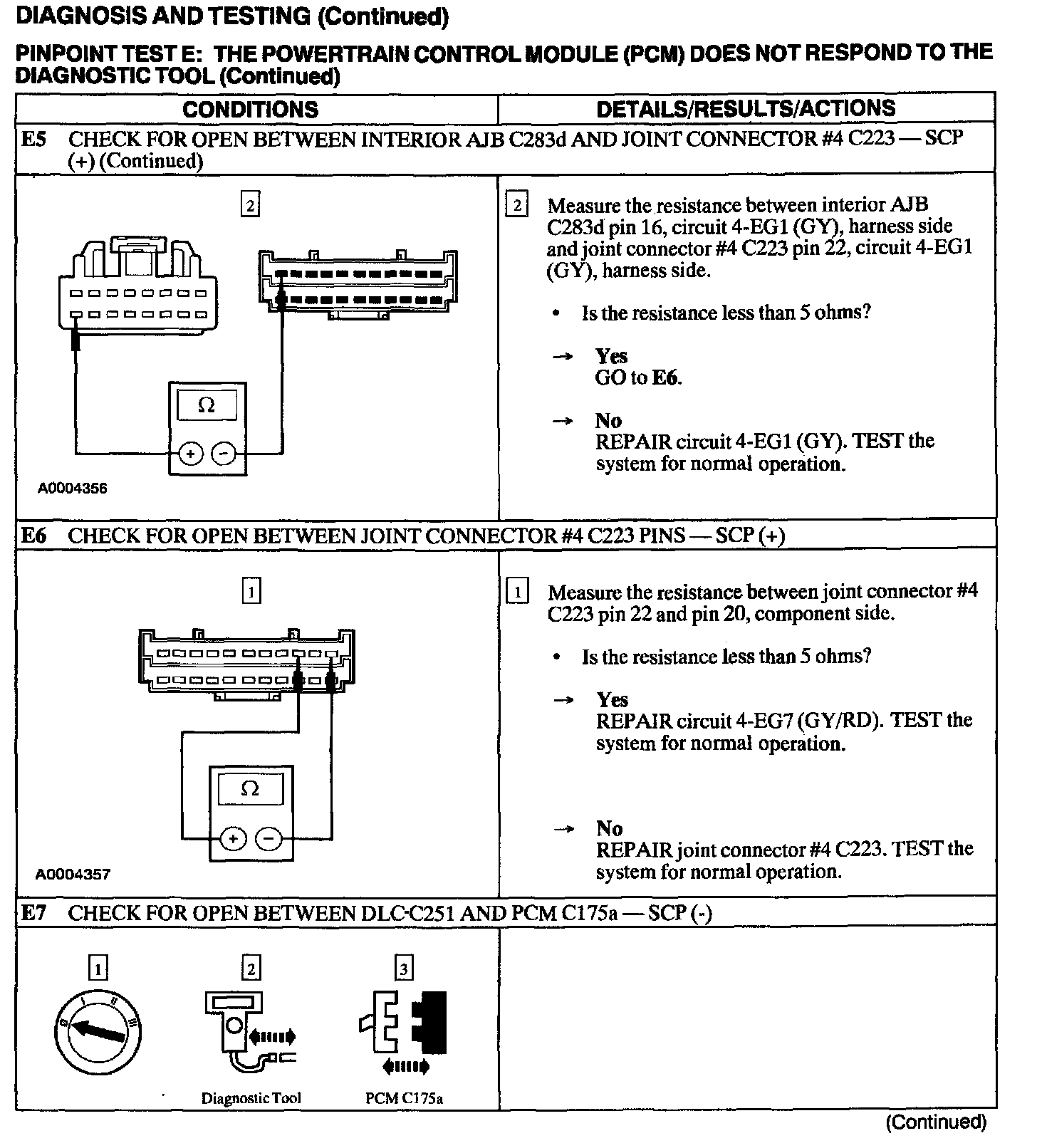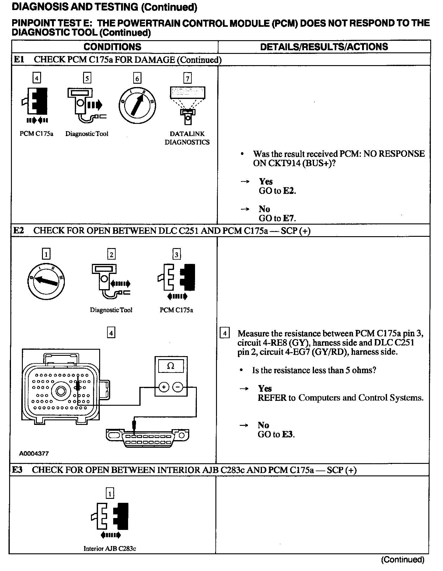 Test E: PCM Does Not Respond to the Diagnostic Tool