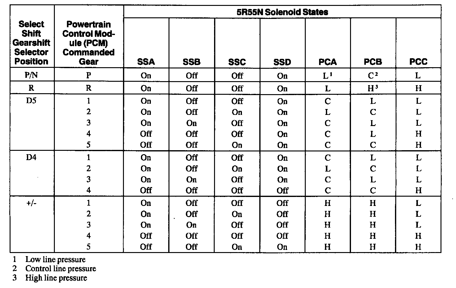 Solenoid Operation Chart (Automatic Transmission-5R55N)
