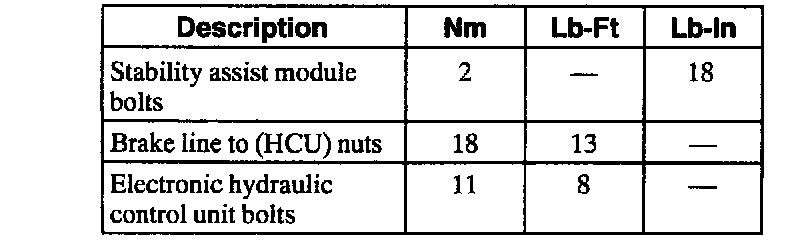TORQUE SPECIFICATIONS