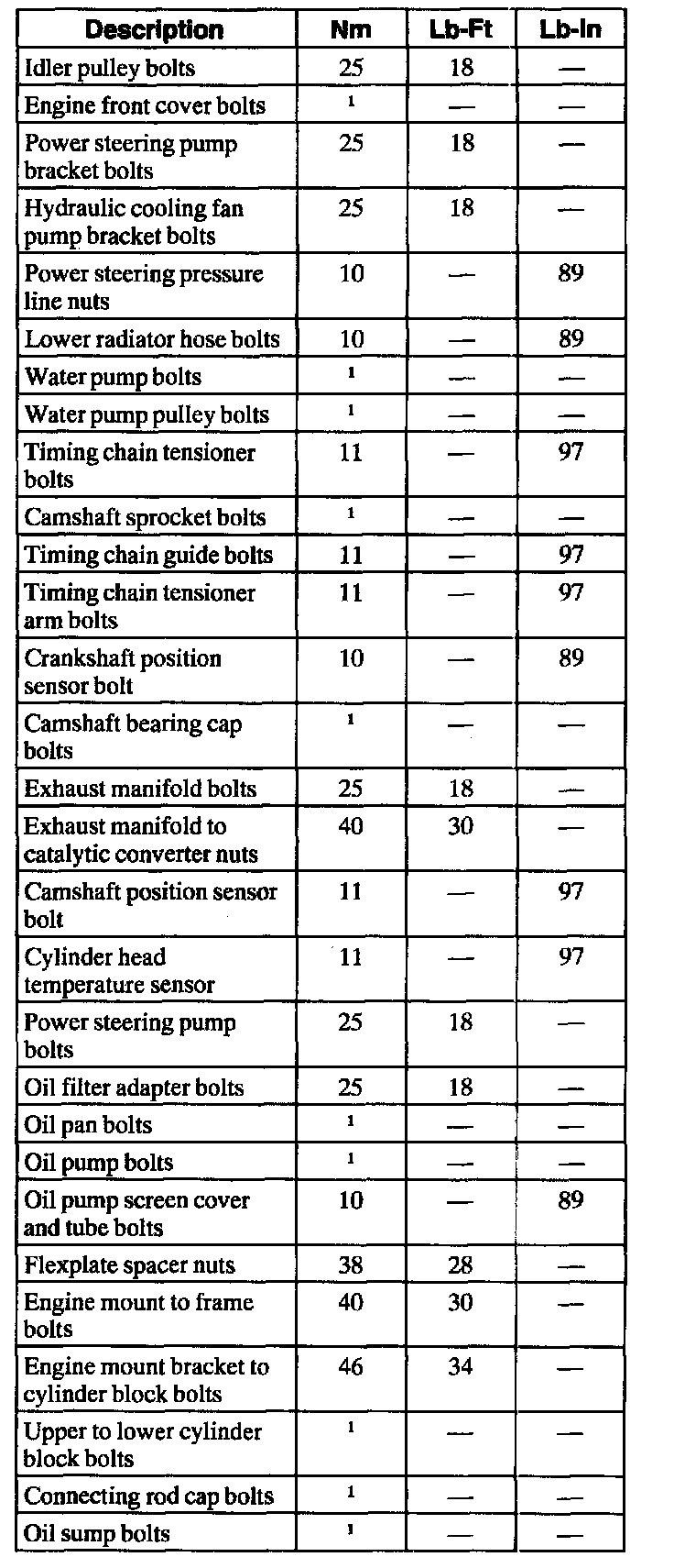 Torque Specifications