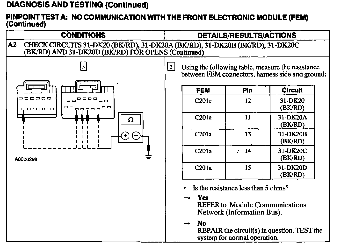 Test A: No Communication With the Front Electronic Module