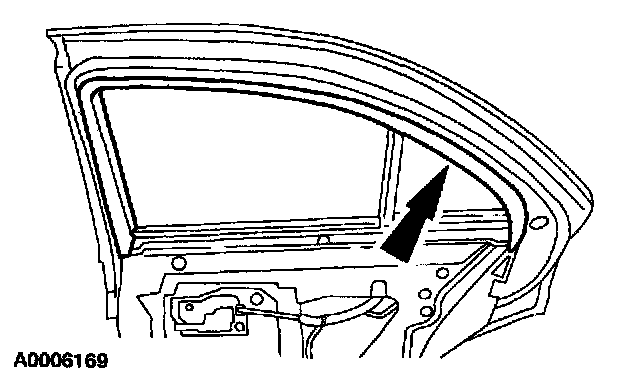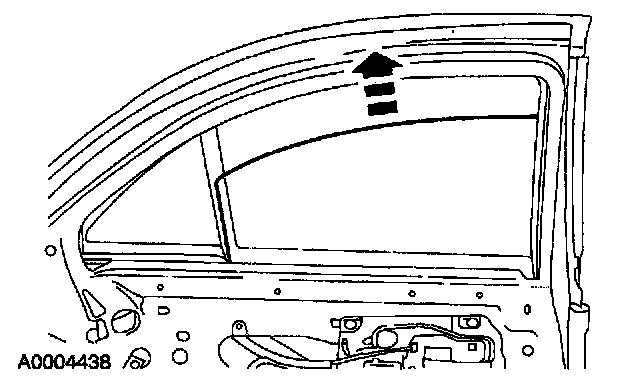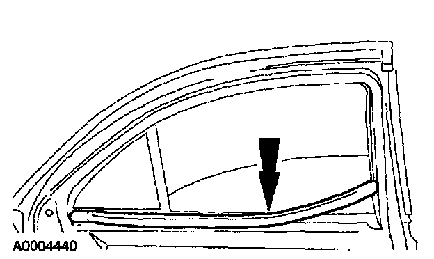 ^ Lower the rear door window glass out of the channel.