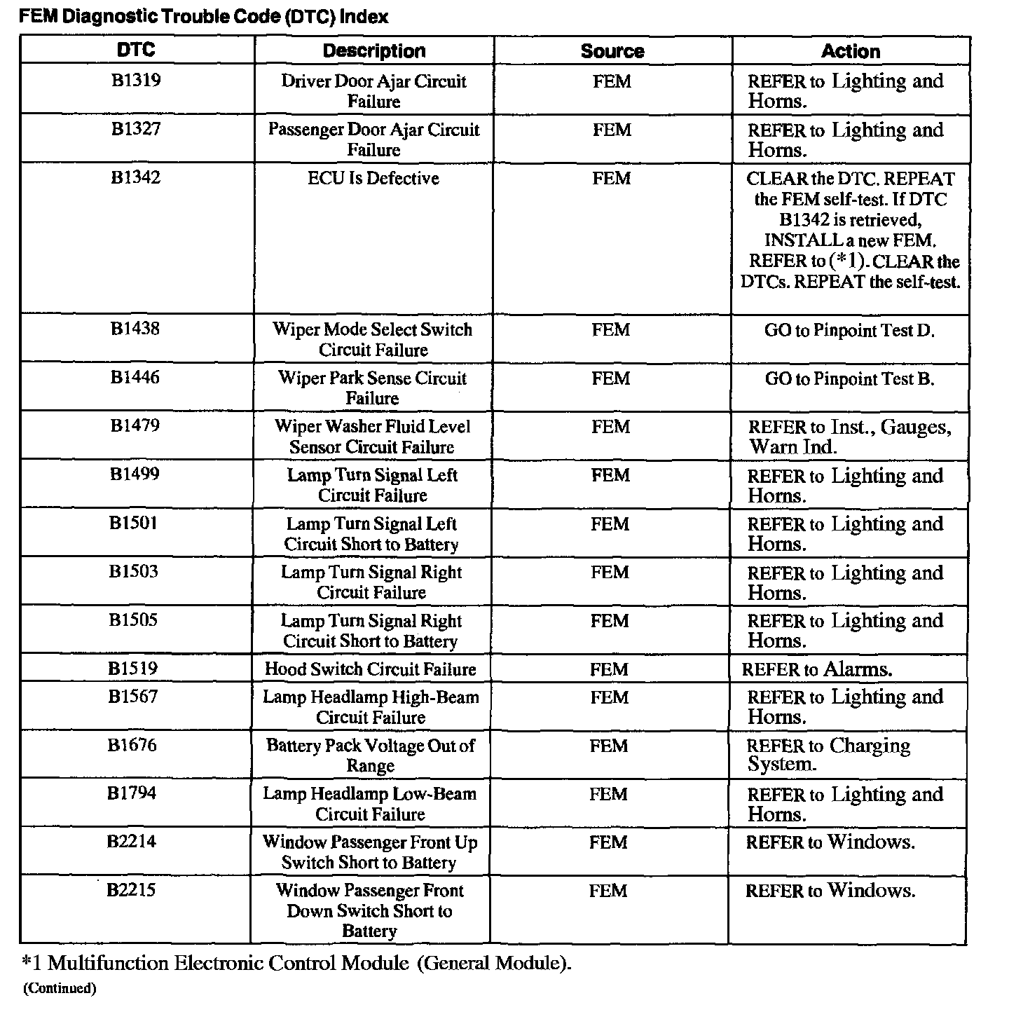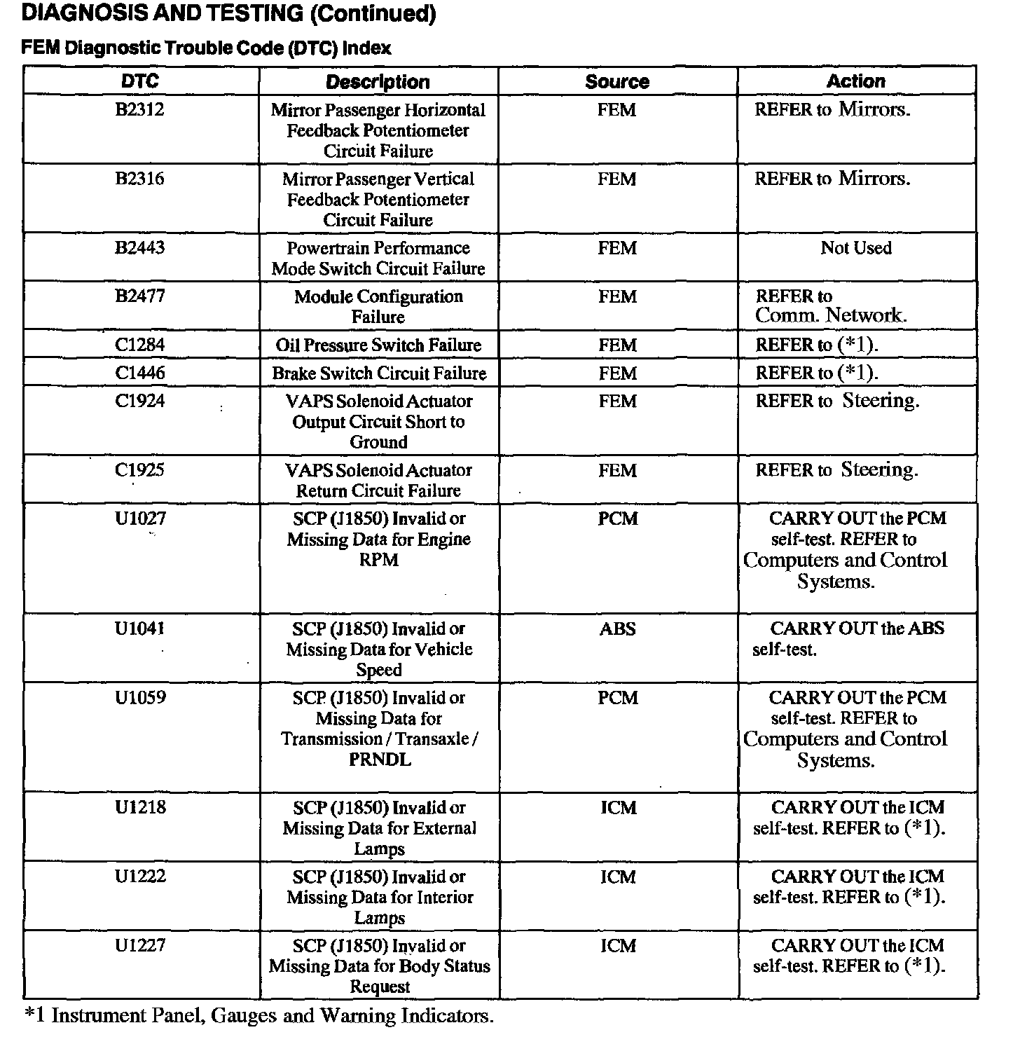 DTC Index B1319 - B2215: