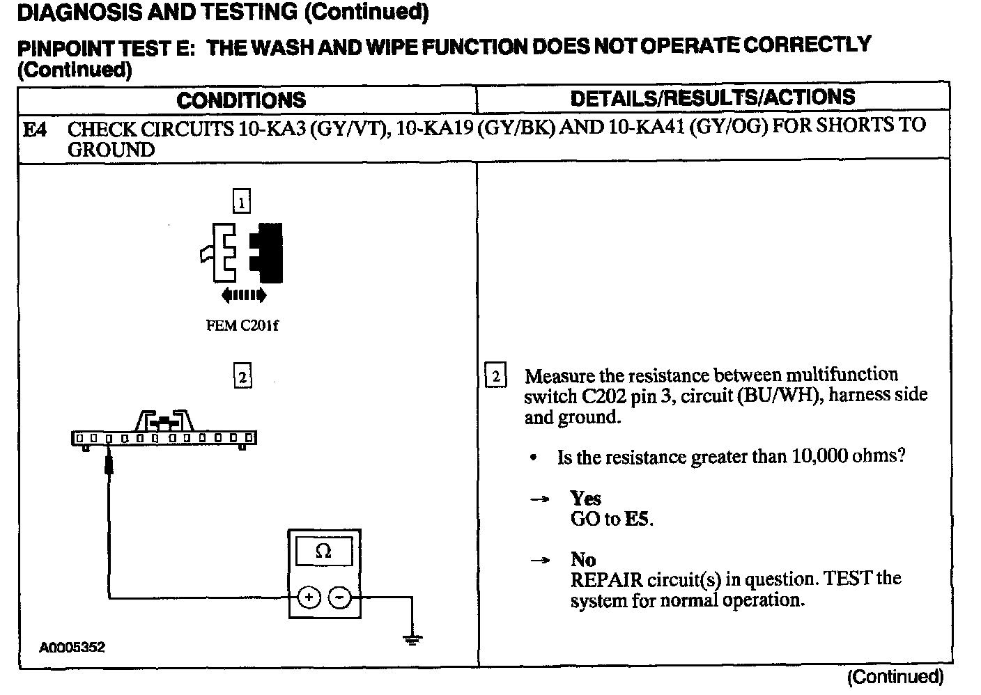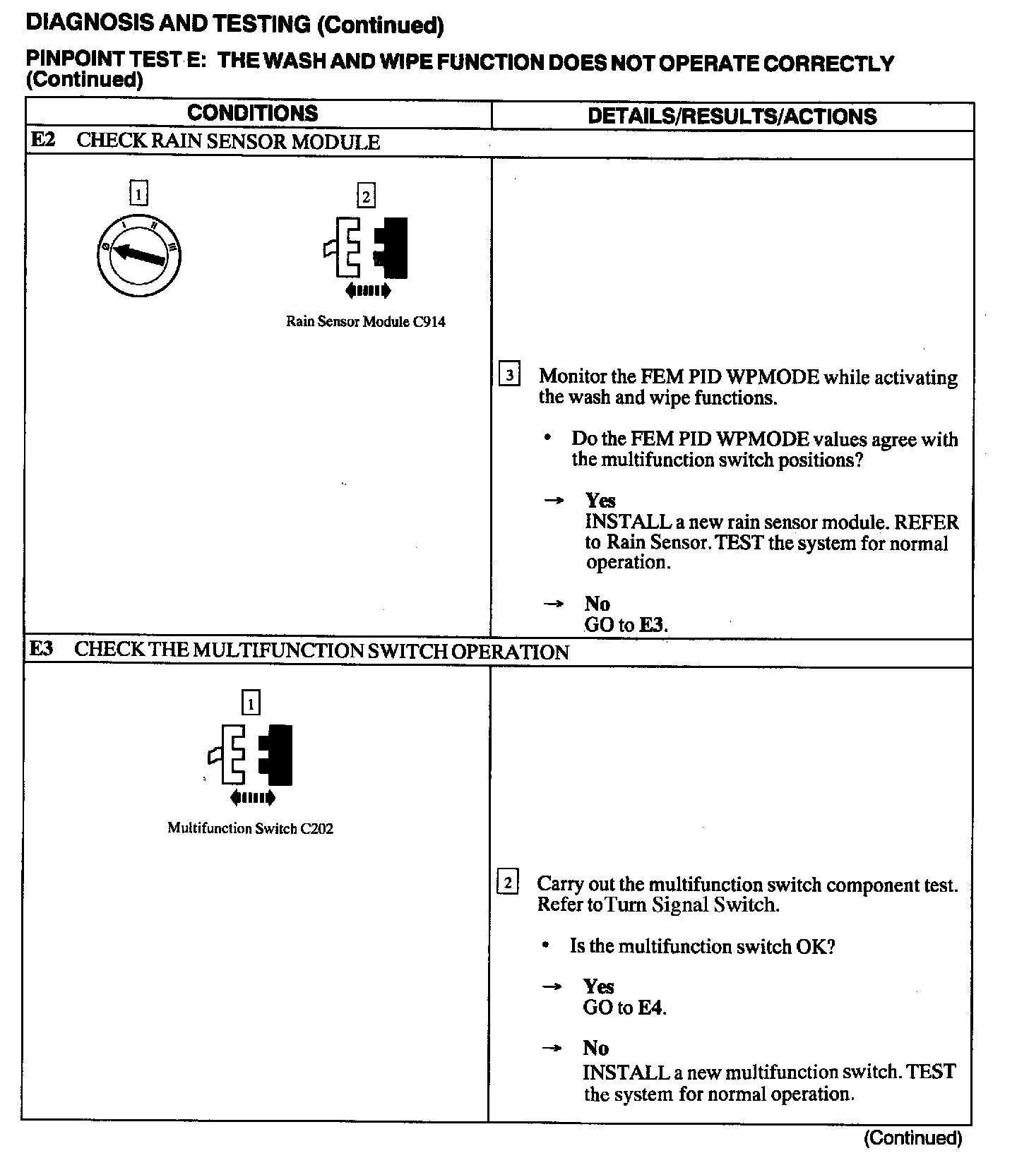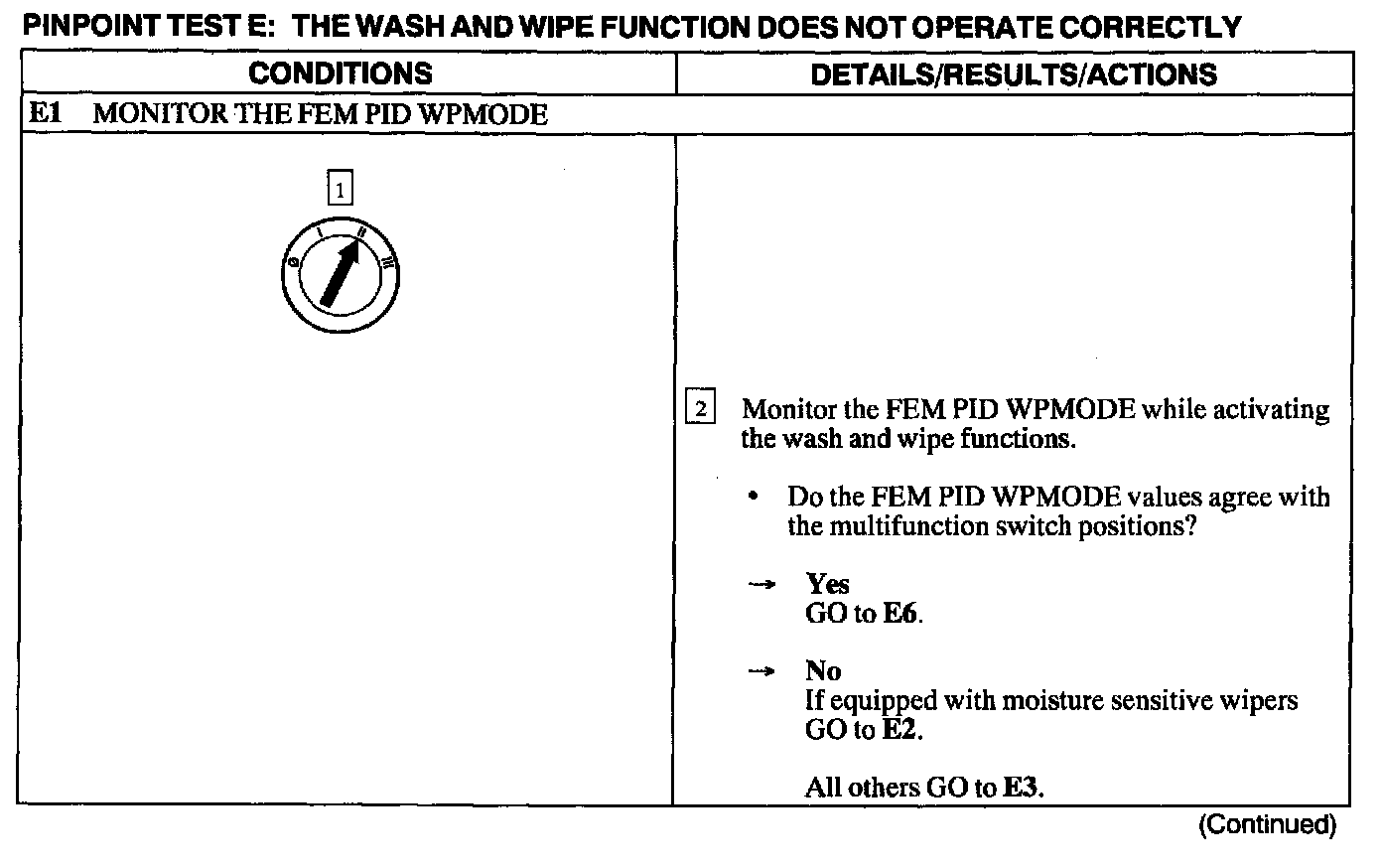 Test E: Wash And Wipe Function Does Not Operate Correctly
