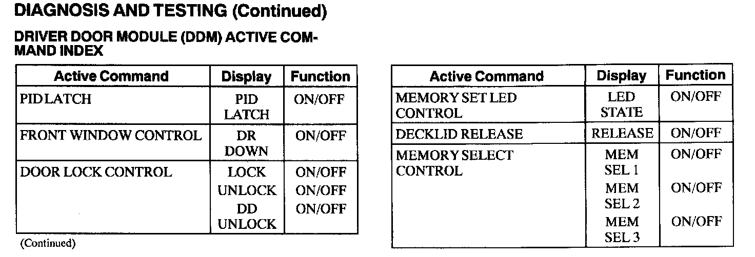 Driver Door Module (DDM) Active Command Index: