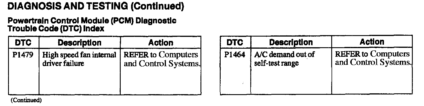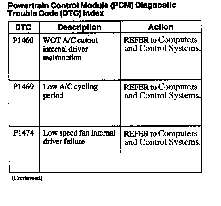 Powertrain Control Module Diagnostic Trouble Code (DTC) Index