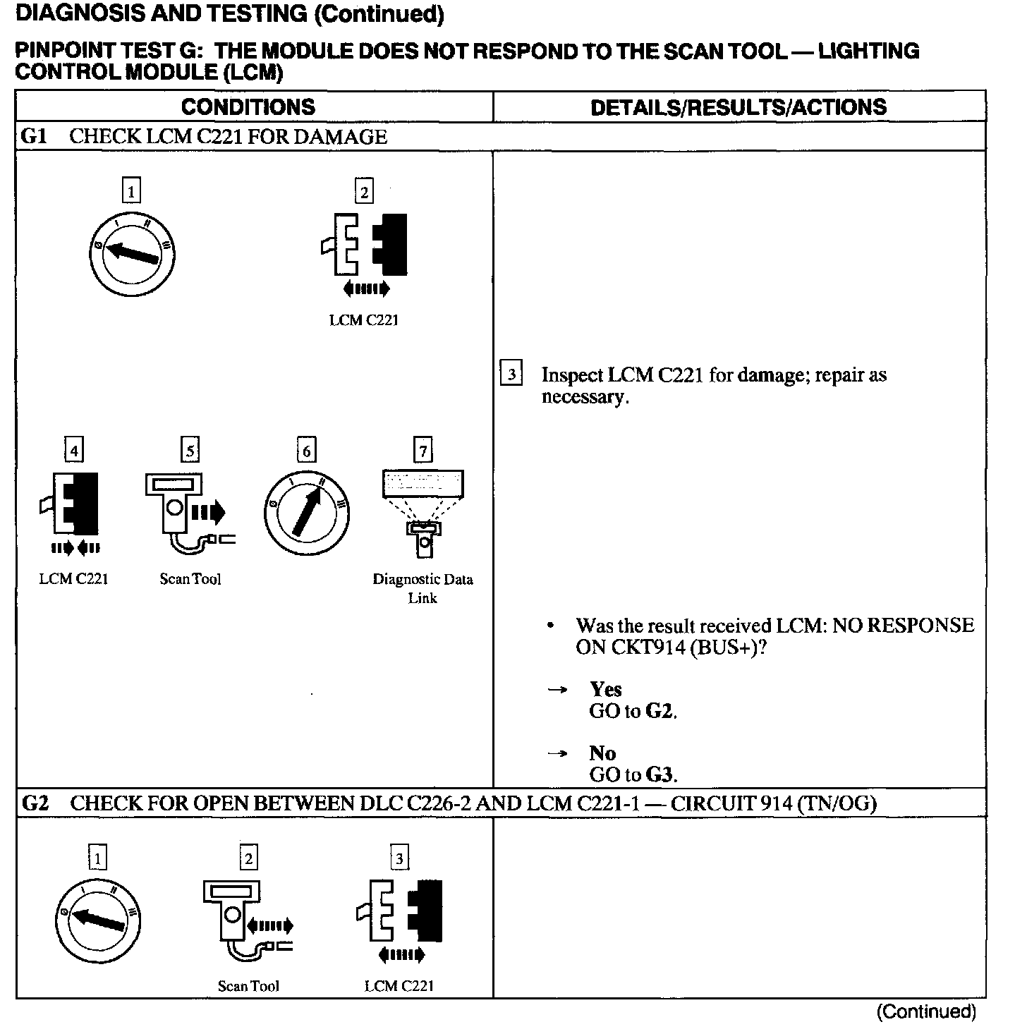 Test G: LCM Module Does Not Respond To The Diagnostic Tool