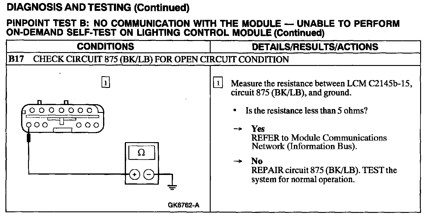 Test B: No Communication With The Module - Unable To Perform On-Demand Self-On Lighting Control Module