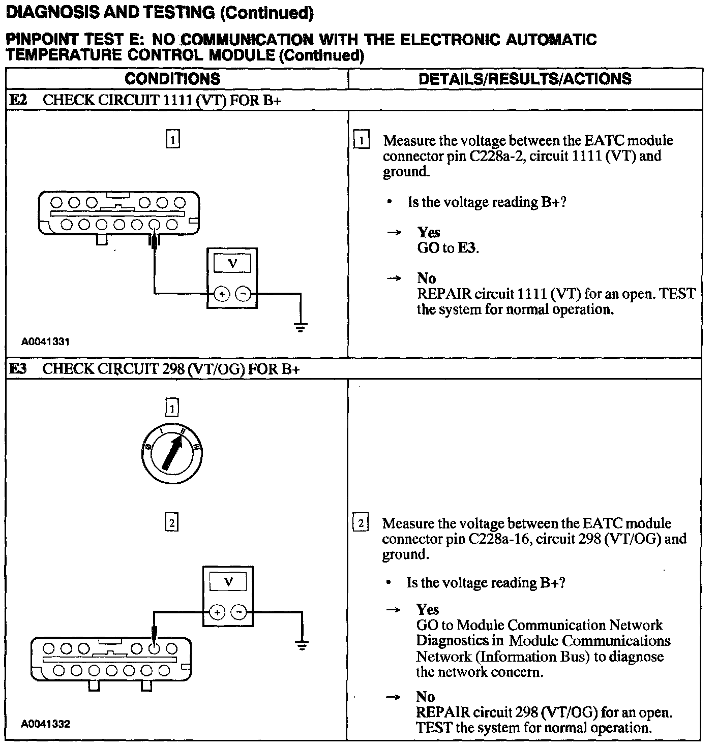 Test E: No Comm. From Elec. Automatic Temp. Control Module