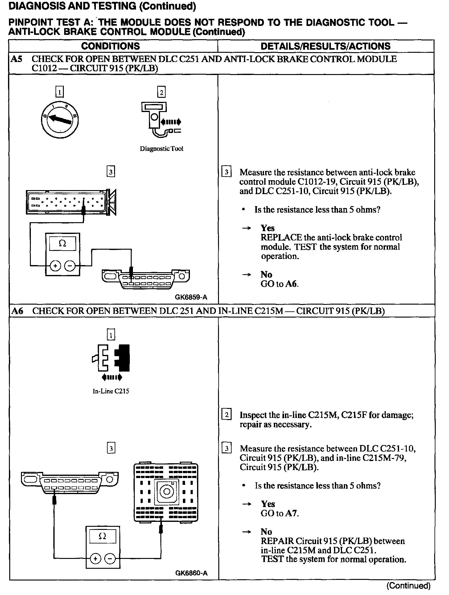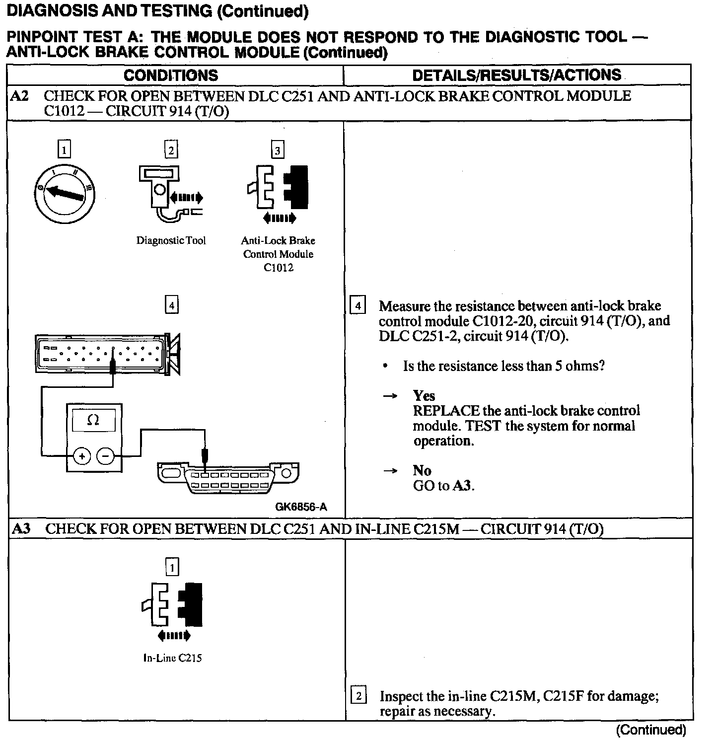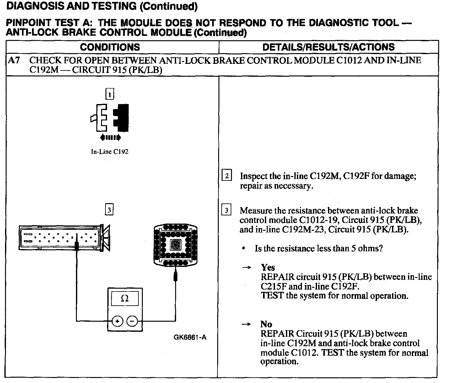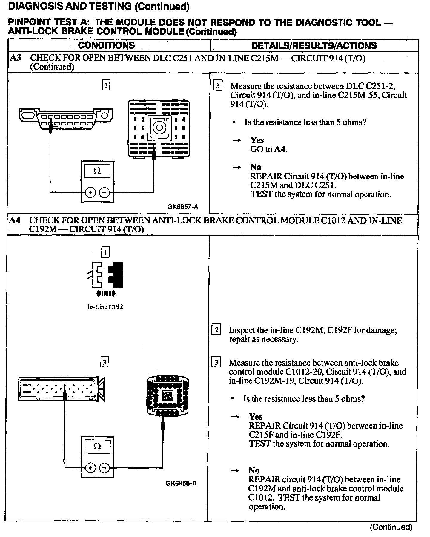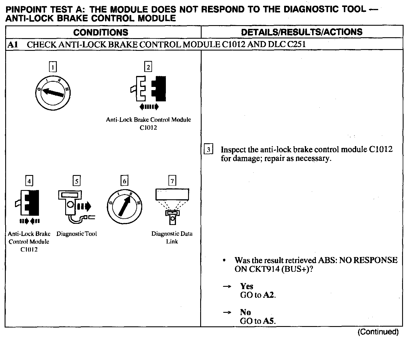 Test A: ABS Control Module Does Not Respond to the Scan Tool