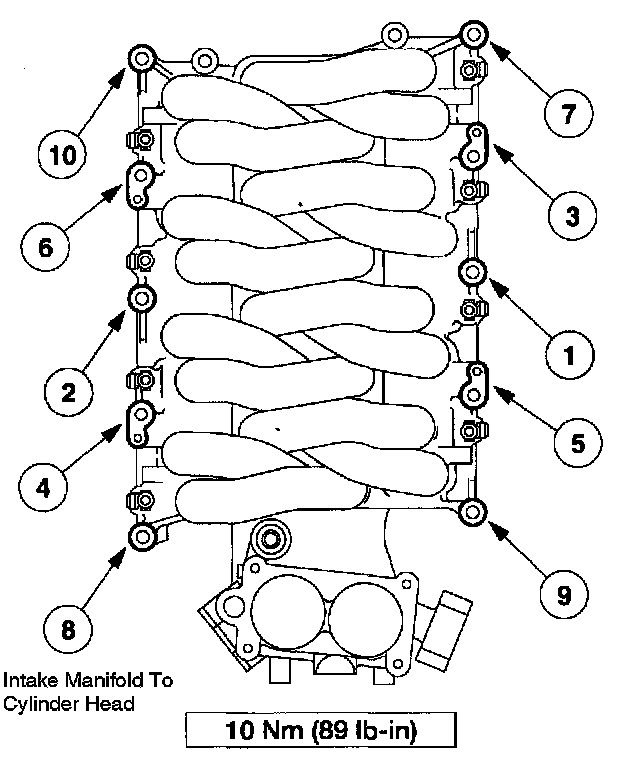 - Install the bolts and tighten to 9 Nm (80 inch lbs.) and rotate an additional 90 degrees.