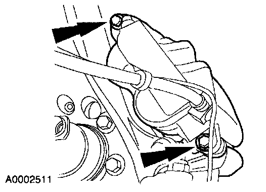 12. Position the two front brake calipers and install the bolts.