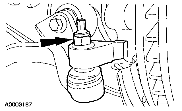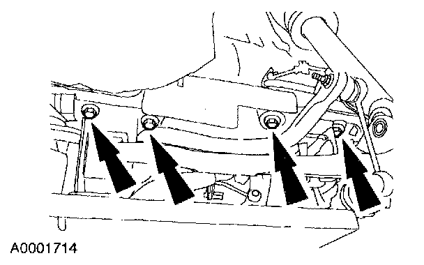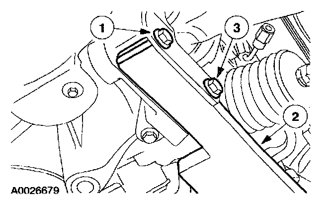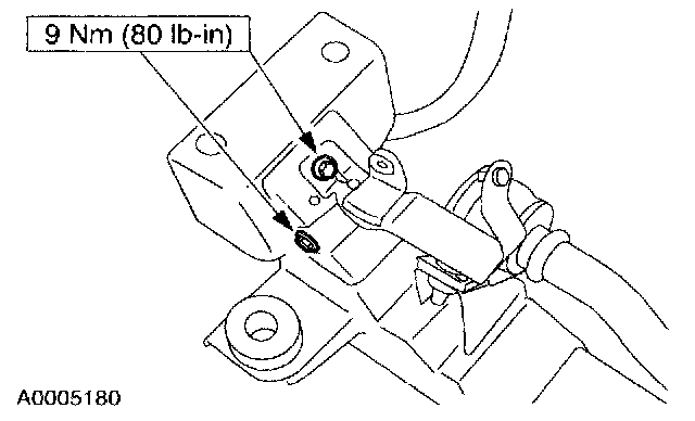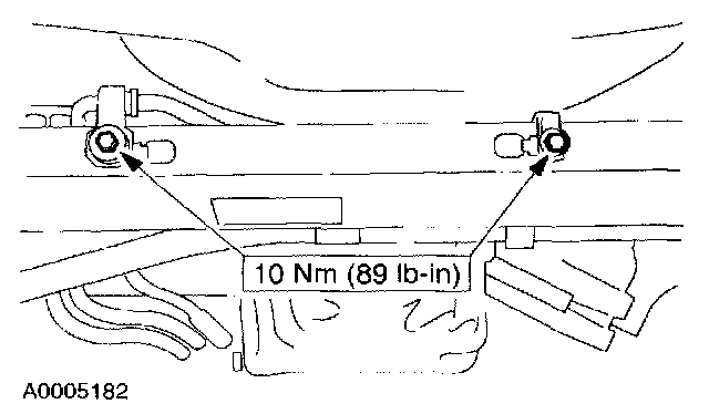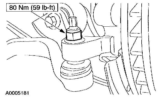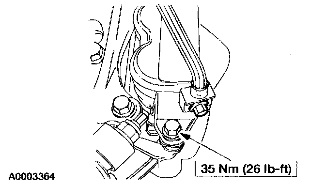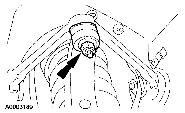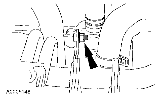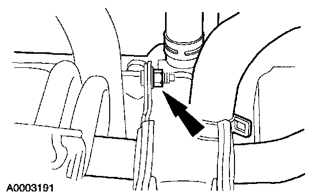 13. NOTE: The nut is most easily accessed above the front of the radiator support crossmember.