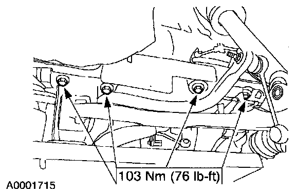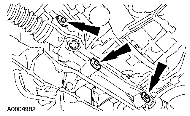 - Make sure the weight of the engine is not contacting the crossmember and make sure the crossmember assembly is in contact with the body before tightening the bolts.