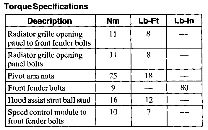 Torque Specifications: